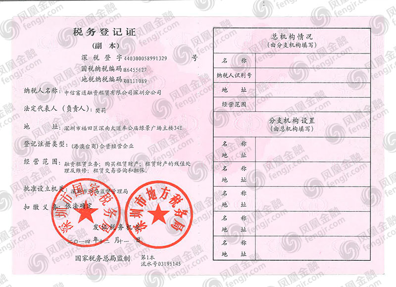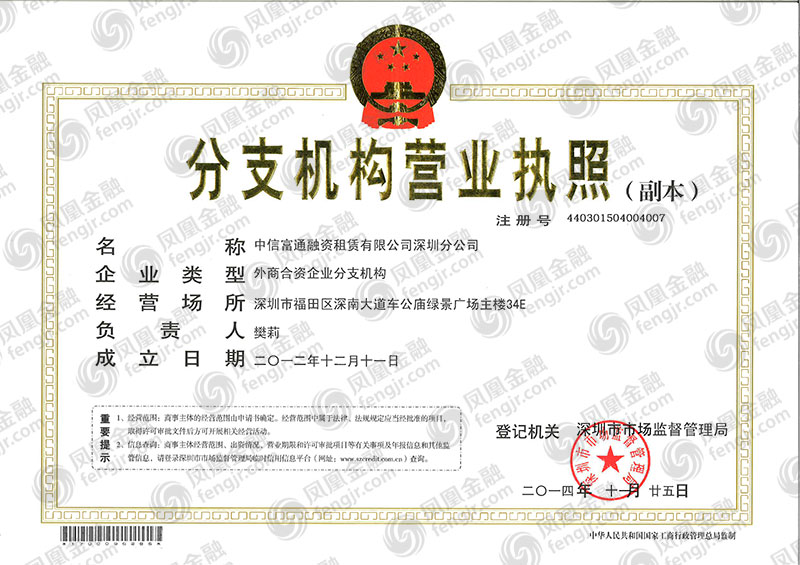 中信富通融资租赁有限公司深圳分公司(以下简称中信富通深圳分公司),隶属于中信富通融资租赁有限公司,成立于2012年。中信富通深圳分公司坐落在金融产业聚集的福田区,依托深圳特区独特的金融优势和强大的辐射能力,充分发挥自身在资源配置中独有的组织和桥梁作用,为泛珠三角地区提供专业的非银行金融服务,逐步打造出多方共赢、共同发展的良好经营局面,向华南区融资租赁领军者迈进。